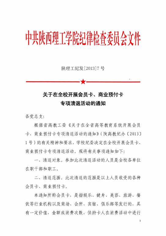 关于在全校开展会员卡、商业预付卡专项清退活动通知